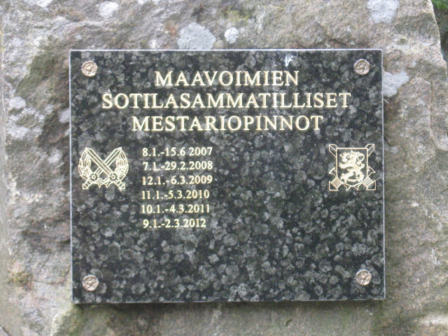 Päivitys: Tämä Maasotakoulun pihamaalla sijaitseva muistomerkki ansaitsee täydellisen päivityksen. Ensimmäistä kertaa blogimme historiassa jopa otsikko menee uusiksi, mutta hyvä niin. Julkaistuamme tarinan meihin otti yhteyttä muistomerkin suunnittelija ja ideanikkari sotilasmestari Vesa Tuovinen. Lupasimme ensi tilassa(kolme viikkoa sitten) korjata virheet, koska Vesa toimitti meille hienoa aineistoa muistomerkin suunnitteluvaiheesta, lehtijuttuja aiheesta ja mikä mielenkiintoisinta, kuvan muistomerkin suunnitteluvaiheesta. Tällaista materiaalia ei blogissamme ennen ole ollutkaan tarjolla, joten ajattelin julkaista päivityksen pelkästään tekijän sanoin, enkä ryhdy referoimaan Vesa Tuovisen lähettämää materiaalia. Kiitokset Vesa sinulle!